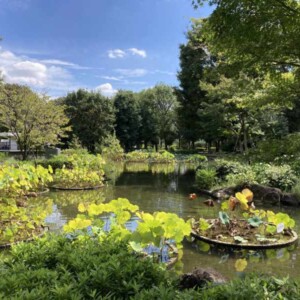 府中市はハス研究の第一人者・大賀一郎博士ゆかりの地。そのため修景池には30種類もの蓮が浮かぶ。柵で覆われていない場所があり開放感がある。